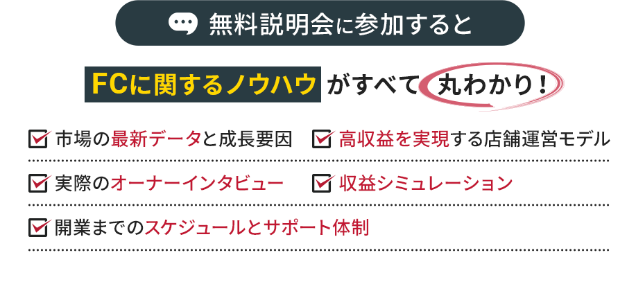- 店舗経営で一番負荷がかかる、集客・求人・スタッフ教育は本部がすべて行ってくれたので、とても助かりました!