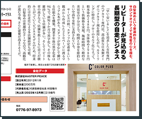 | 事業内容 | ・ヘアカラー専門店の運営 ・FC店舗への経営指導 |