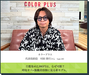 - 自店を多店舗展開していきたかったのですが、美容師業界の課題である人材育成に限界を感じ、カラープラスの存在を知って、多店舗展開しやすい事業だと思い加盟することを決めました。