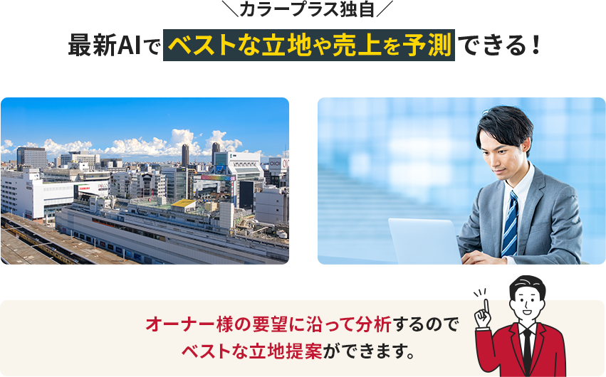 物件は、弊社とオーナー様がそれぞれ一緒に探していきます。